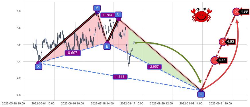 ➣ 未完成【螃蟹】形态起点X: 05-24:14, 已到达C点: 07-22:14, 预测最终D点: 09-08:12, 共265交易小时