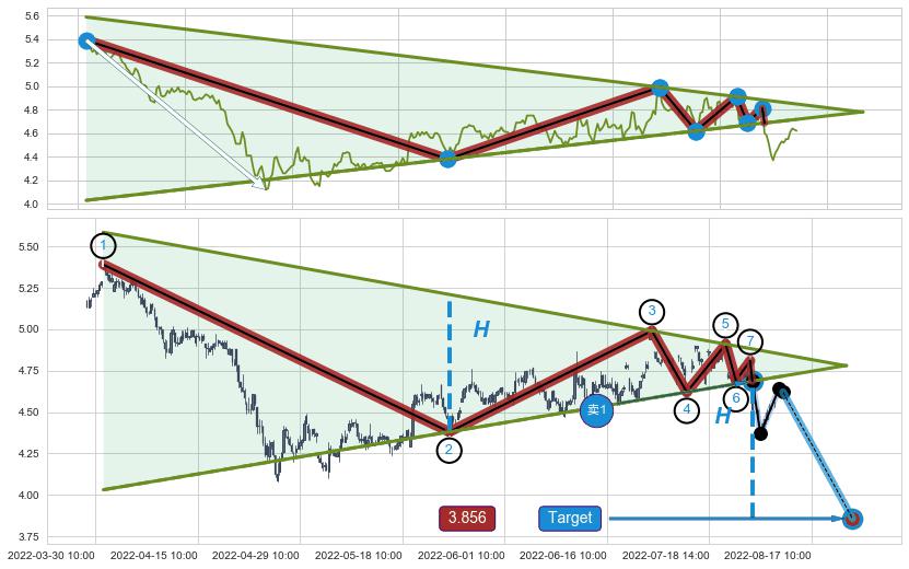➣ 【已确认突破】最后价格:4.62与最小【整理】第一目标价格→(08-22:12: 3.856 )相较: 下跌空间【较大】