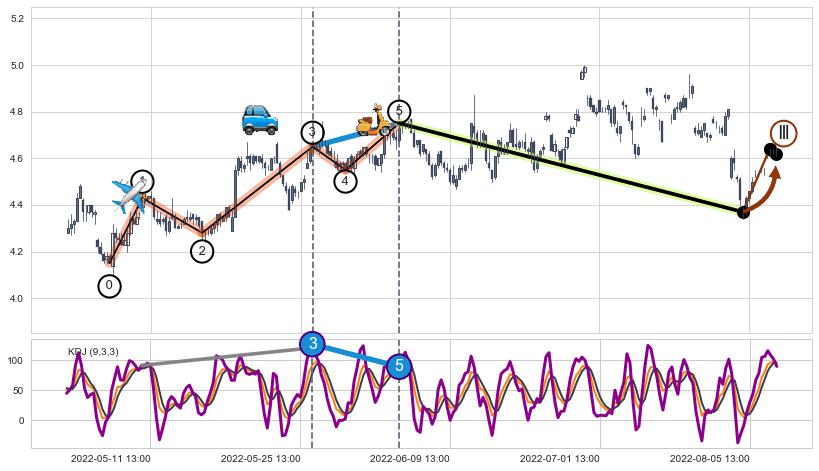 ➣ 【KDJ】缠论走势出现【常规背离 & 反转信号】背离程度38.27%,背离夹角角度58.0˚,背离程度中等