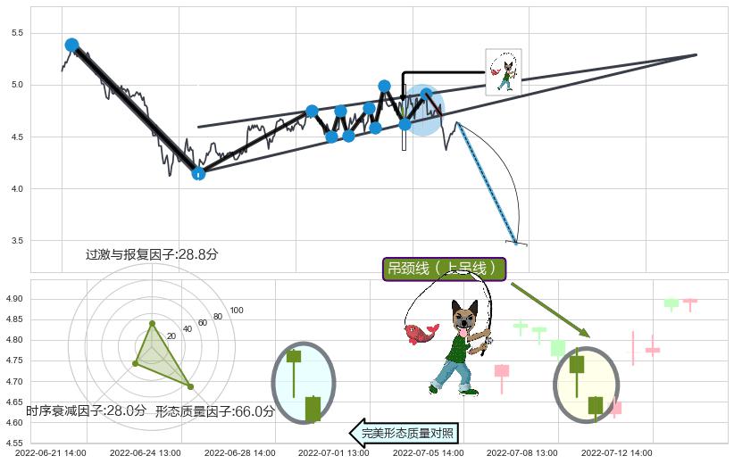 | 18 🅚:吊颈线(上吊线) ➕ ☯️:缠论买卖点上升缠:猜想2卖趋势延续,蓄力下跌至3卖(大周期趋势均值回复中的小周期趋势跟踪) ☞ 看空信号 ⇥ 【🅚线】交织【图形】⇥ 综合量化分数: 47 | > |