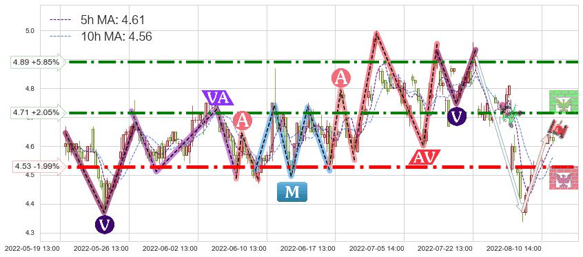 ➣ AI预测: 假定反转继续,第❷价格目标位置(08-16:14, 4.75)