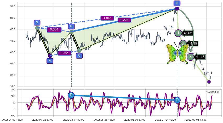 2022-06-02: 第一阻力位47.56强力阻拦了上升趋势,成功阻止了价格的继续上涨。