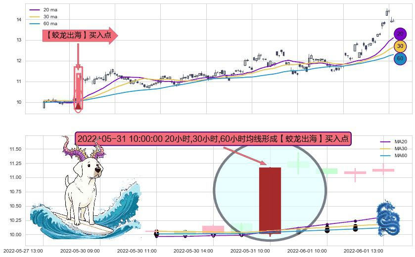 ⚀ 2022-05-31 10:00:00小时显现 20小时-30小时-60小时均线 【蛟龙出海】买入点 看多信号,后市看涨,买入