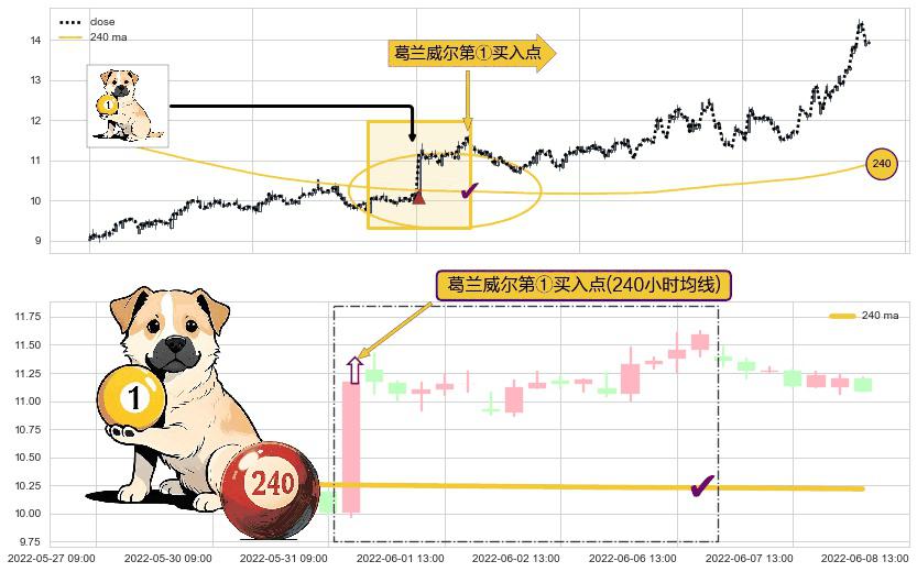 ⚀ 2022-05-31 10:00:00-小时显现 葛兰威尔均线 240小时均线 第买①入点 走势反转见底信号,后市看涨,买进信号