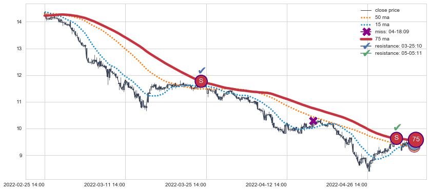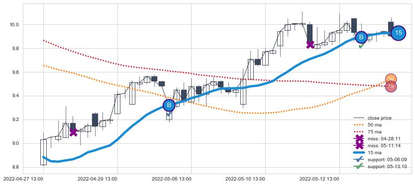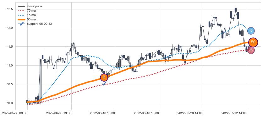 ⚂ 2022-07-12 14:00:00-小时均线向下破位,2022-07-14 13:00:00-小时重新上穿突破均线,均线支撑再次生效