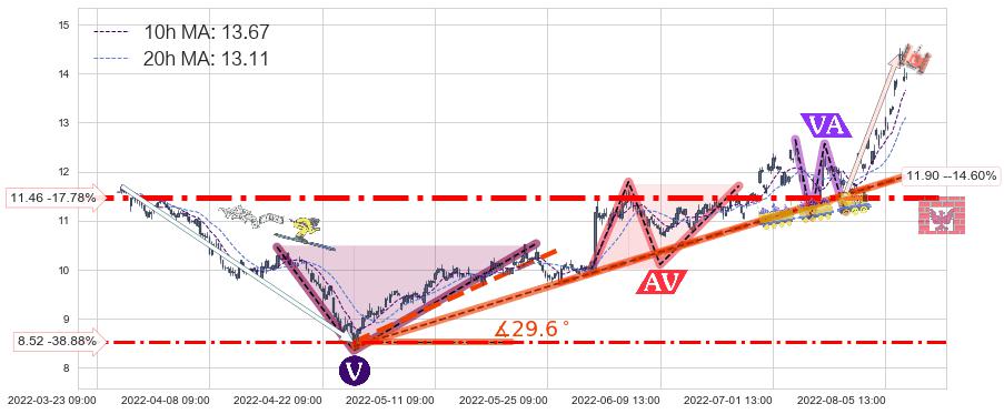 ♘ 支撑价格位11.46,可信任强度90.85%,距离最后交易2022-08-12 14:00形成的收盘价格13.94相差 -17.78%