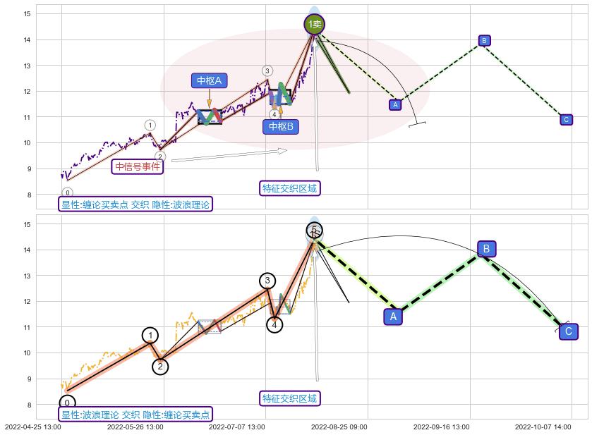 ➢ 智能识别已发生事件:缠论第一类卖点【卖❶】→(08-11:13: 14.40 )