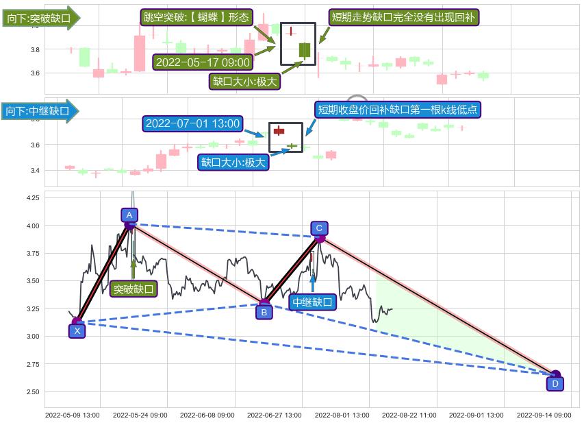 ➢ 【蝴蝶】形态 🔜 中继缺口 🔜 突破缺口 综合量化分数:46.13 【偏空】