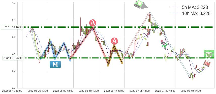 ♘ 阻力价格位3.351,可信任强度84.47%,距离最后交易2022-08-12 14:00形成的收盘价格3.240相差 +3.42%