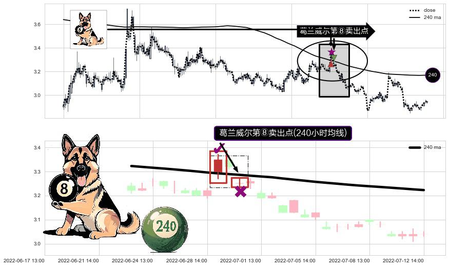 ⚁ 240小时均线 第⑧卖出点 属于 均线服从 信号,属于趋势运行的【常态】即信号期望为下降趋势的中继