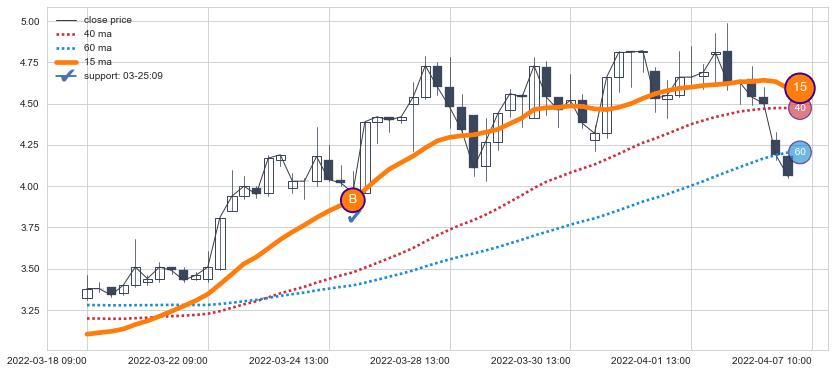 ⚂ 2022-06-09 13:00:00小时突然冒出一根大阴线,一下子下穿三条均线且收盘价收在各条均线之下