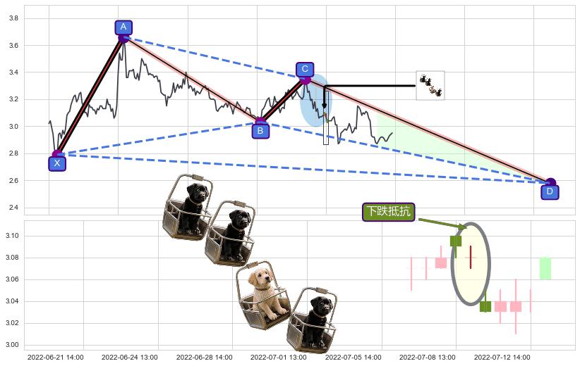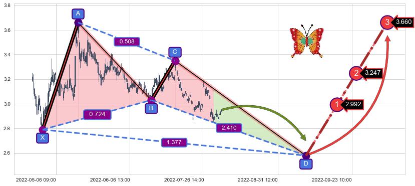 ➣ 未完成【蝴蝶】形态起点X: 04-27:11, 已到达C点: 06-29:13, 预测最终D点: 09-08:14, 共346交易小时