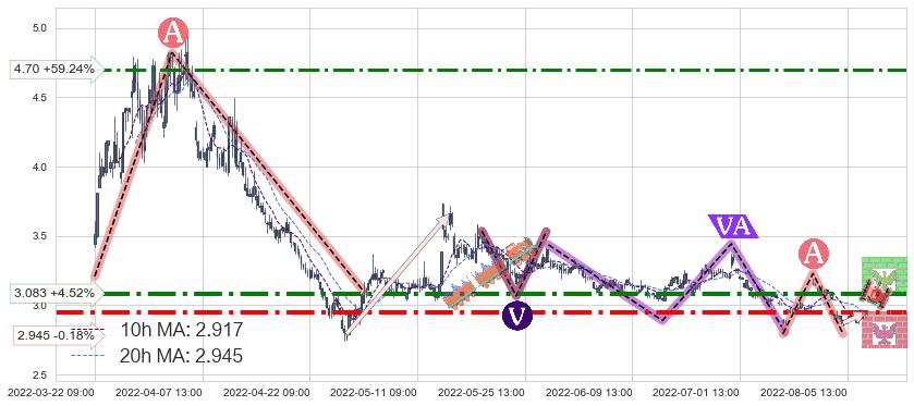 ♘ 阻力价格位4.70,可信任强度55.27%,距离最后交易2022-08-12 14:00形成的收盘价格2.950相差 +59.24%