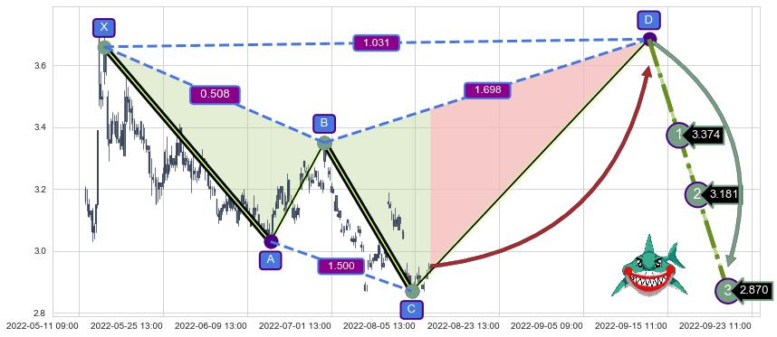 ➣ 未完成【鲨鱼】形态起点X: 05-16:13, 已到达C点: 08-04:13, 预测最终D点: 09-13:12, 共325交易小时