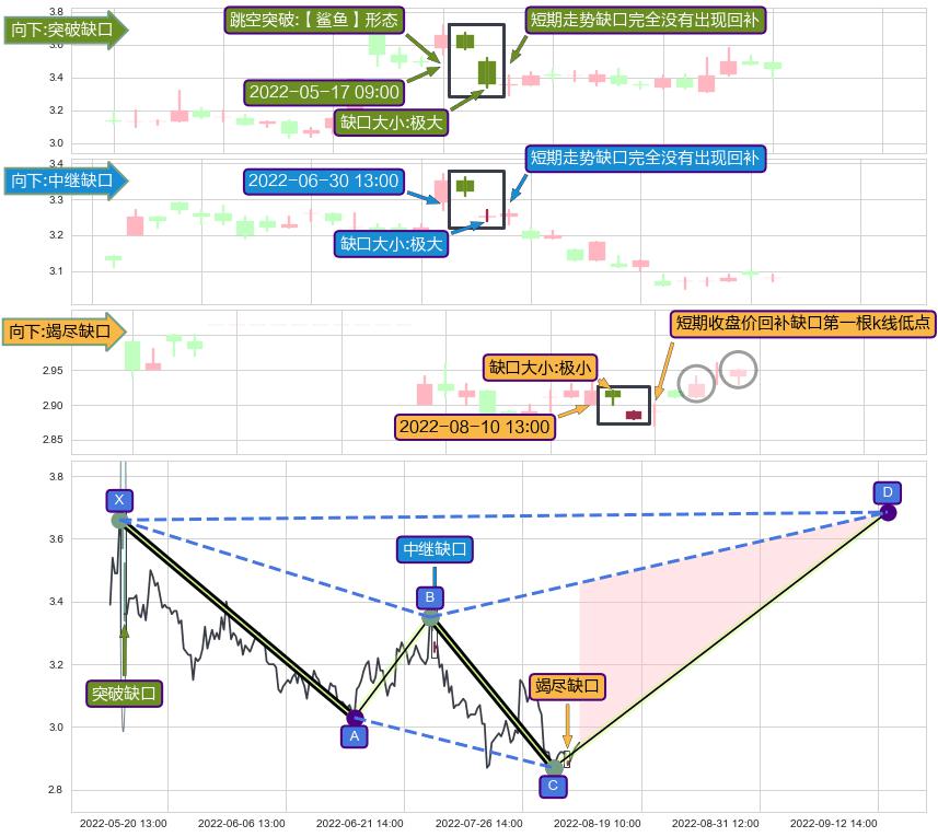 ➢ 2022-08-10 13:00形成:向下跳空【竭尽】缺口