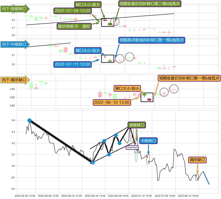 ➢ 2022-08-10 13:00形成:向下跳空【竭尽】缺口