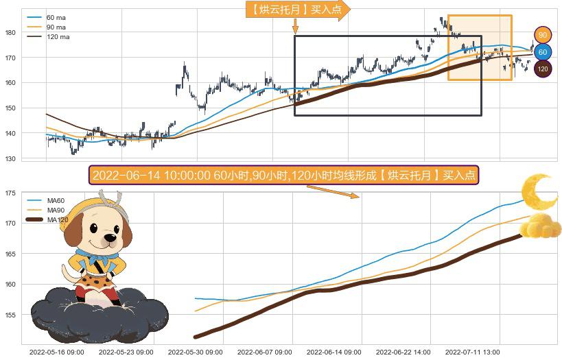 ⚀ 2022-05-26 09:00:00小时-2022-07-19 13:00:00小时显现 60小时-90小时-120小时均线 【烘云托月】买入点 看多信号,后市看涨,买入