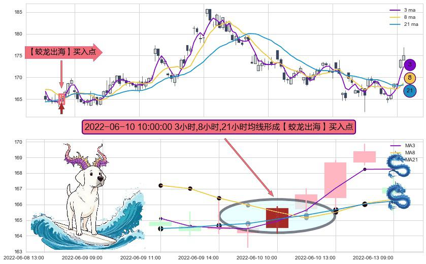 ⚀ 2022-06-10 10:00:00小时显现 3小时-8小时-21小时均线 【蛟龙出海】买入点 看多信号,后市看涨,买入