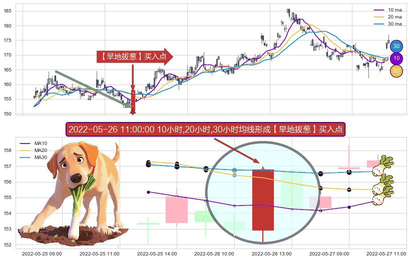 ⚀ 2022-05-26 11:00:00小时显现 10小时-20小时-30小时均线 【旱地拔葱】买入点 看多信号,后市看涨,买入