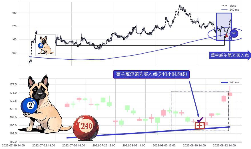 ⚀ 2022-08-10 13:00:00-小时显现 葛兰威尔均线 240小时均线 第②买入点 上升趋势的中继信号,后市看涨,买进信号