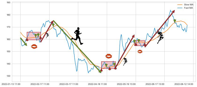 04-12 13:00至04-26 11:00 慢线与快线多次接触,存在上下穿越,有缠绕