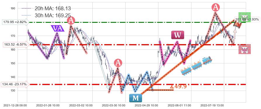 ♘ 阻力价格位179.95,可信任强度55.22%,距离最后交易2022-08-12 14:00形成的收盘价格175.01相差 +2.82%