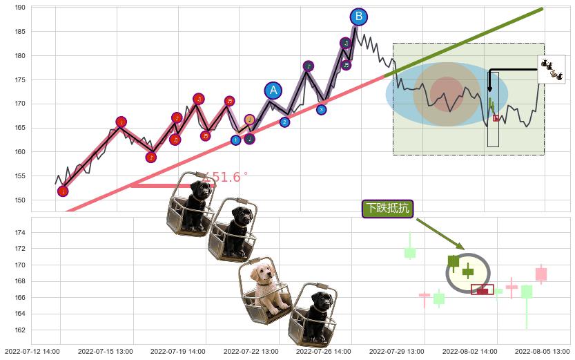 ♘ 阻力价格位185.70,可信任强度56.40%,距离最后交易2022-08-12 14:00形成的收盘价格175.01相差 +6.11%