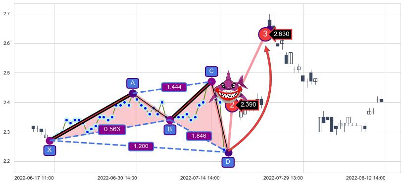 ➣ 已完成【鲨鱼】形态起点X: 06-17:10, 终点D: 07-15:14, 共44交易小时