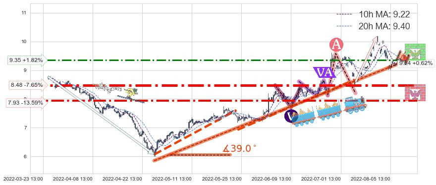 ♞ 10小时均线:9.22,20小时均线:9.40→ 快线<慢线