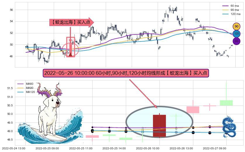 ⚀ 2022-05-26 10:00:00小时显现 60小时-90小时-120小时均线 【蛟龙出海】买入点 看多信号,后市看涨,买入