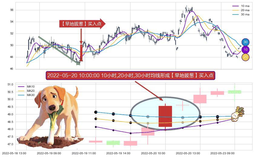 ⚀ 2022-05-20 10:00:00小时显现 10小时-20小时-30小时均线 【旱地拔葱】买入点 看多信号,后市看涨,买入