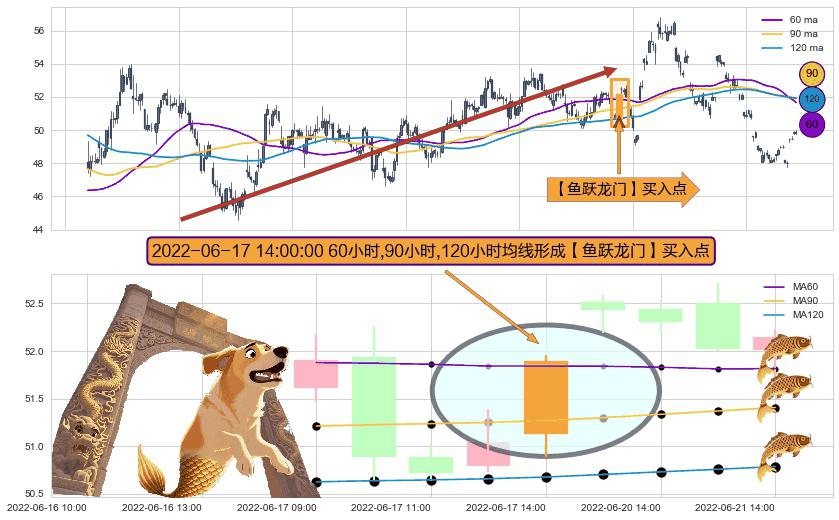⚀ 2022-06-17 14:00:00小时显现 60小时-90小时-120小时均线 【鱼跃龙门】买入点 看多信号,后市看涨,买入
