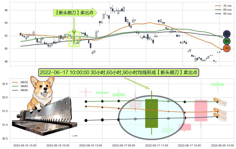 ⚀ 2022-06-17 10:00:00小时显现 30小时-60小时-90小时均线 【断头铡刀】卖出点 看空信号,后市看跌,卖出