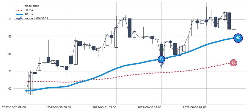 ⚂ 2022-06-17 14:00:00小时开盘向上跳空高开+0.18%, 完成蓄势后的上攻一击,收盘突破均线组合