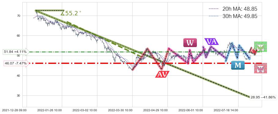 ♞ 20小时均线:48.85,30小时均线:49.85→ 快线<慢线