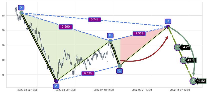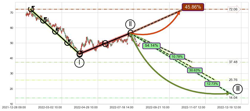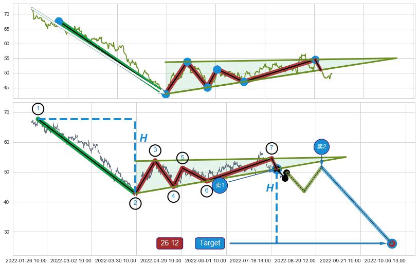 ➣ D点拟合预测价格61.25,距离最后交易收盘价格49.79相差 +23.02%