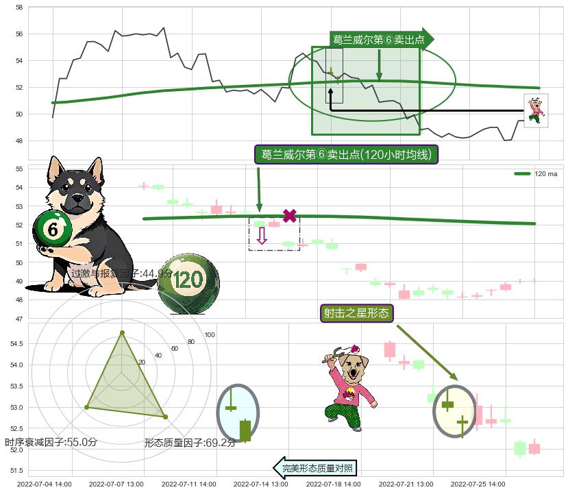 | 3 🅚:【绝命跳】卖出点 ➕ 📐:升楔型下行突破支撑位破位, 猜想持续下沉下跌,被突破的支撑位已变为阻力位 ☞ 看空信号 ⇥ 【均线】交织【图形】⇥ 综合量化分数: 44 | > |