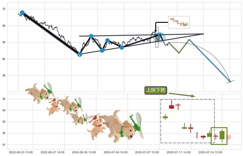 | 4 🅚:下跌抵抗 ➕ 📐:升楔型下行突破支撑位破位, 猜想持续下沉下跌,被突破的支撑位已变为阻力位 ☞ 看空信号 ⇥ 【🅚线】交织【图形】⇥ 综合量化分数: 45 | > |