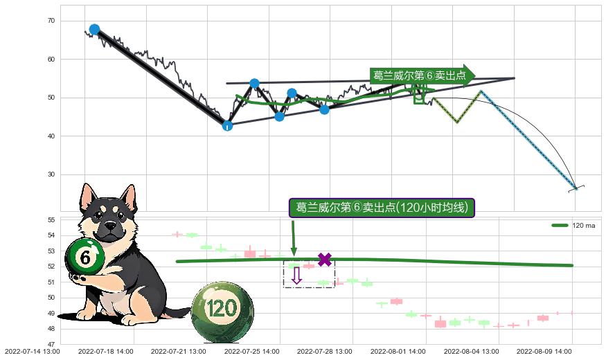| 8 🅚:葛兰威尔第⑥卖出点 ➕ 🌊:波浪理论下跌5浪延续:猜想C点强阻力小反弹终止,猜想保持下跌5浪方向下行(均值回复后大周期继续趋势跟踪) ☞ 看空信号 ⇥ 【均线】交织【图形】⇥ 综合量化分数: 35 | > |