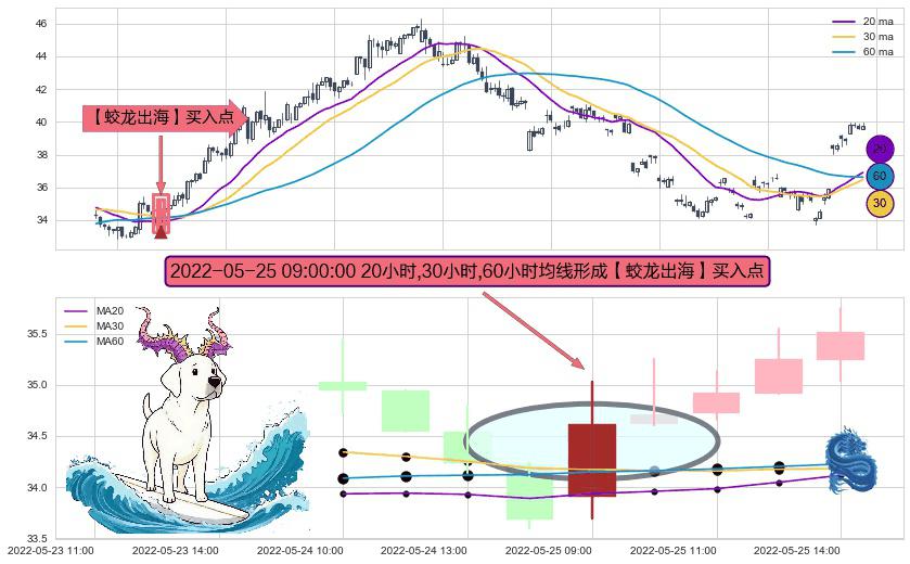 ⚀ 2022-05-25 09:00:00小时显现 20小时-30小时-60小时均线 【蛟龙出海】买入点 看多信号,后市看涨,买入