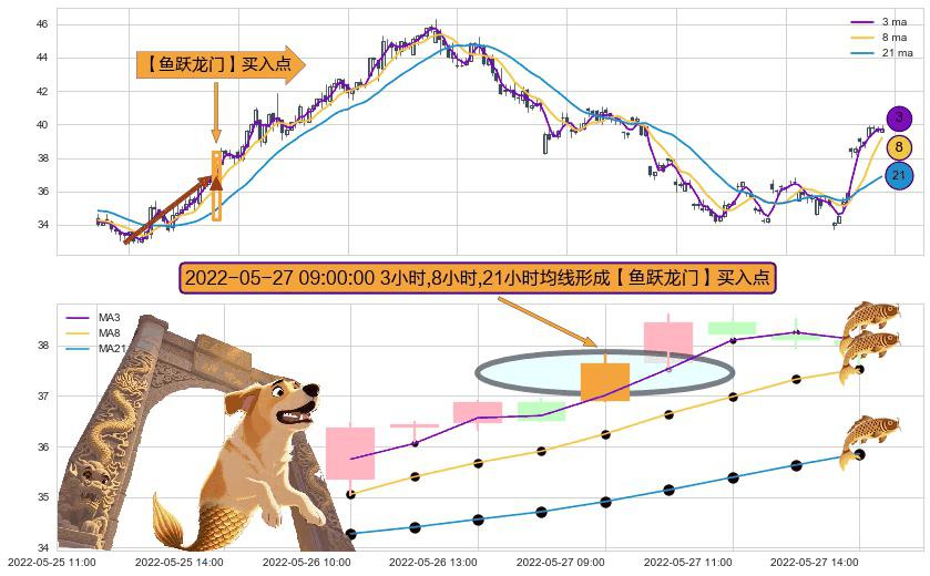⚀ 2022-05-27 09:00:00小时显现 3小时-8小时-21小时均线 【鱼跃龙门】买入点 看多信号,后市看涨,买入