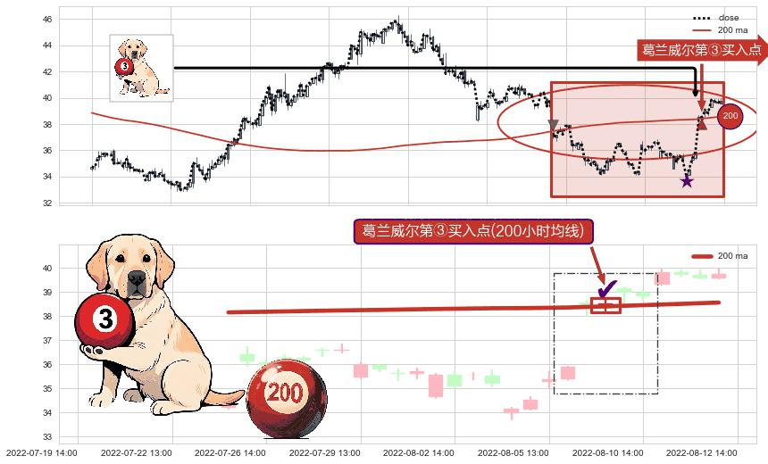 ⚀ 2022-08-09 14:00:00-小时显现 葛兰威尔均线 200小时均线 第③买入点 上升趋势的中继信号,后市看涨,买进信号