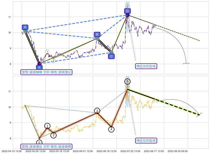 ➢ 谐波蝴蝶与波浪理论信号事件周期长度级别相同,同周期信号事件