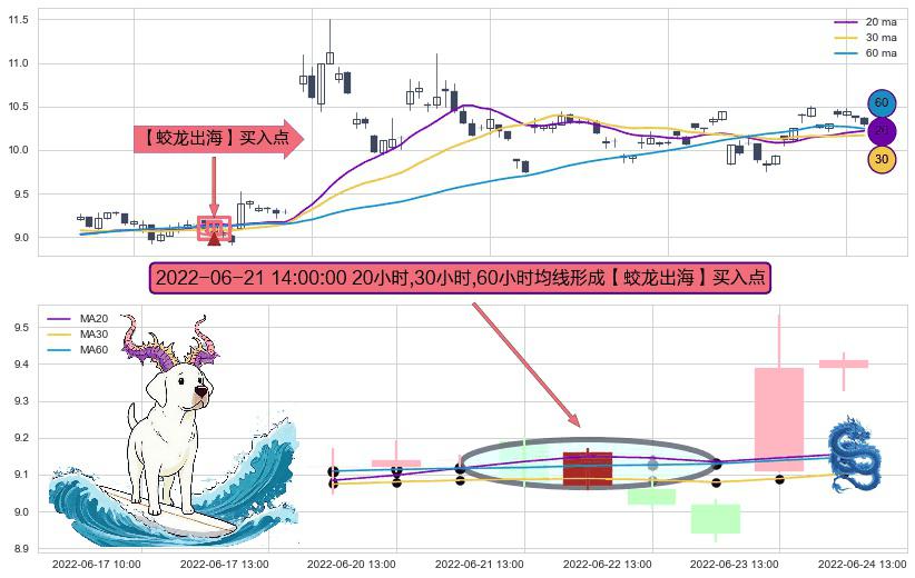 ⚀ 2022-06-21 14:00:00小时显现 20小时-30小时-60小时均线 【蛟龙出海】买入点 看多信号,后市看涨,买入
