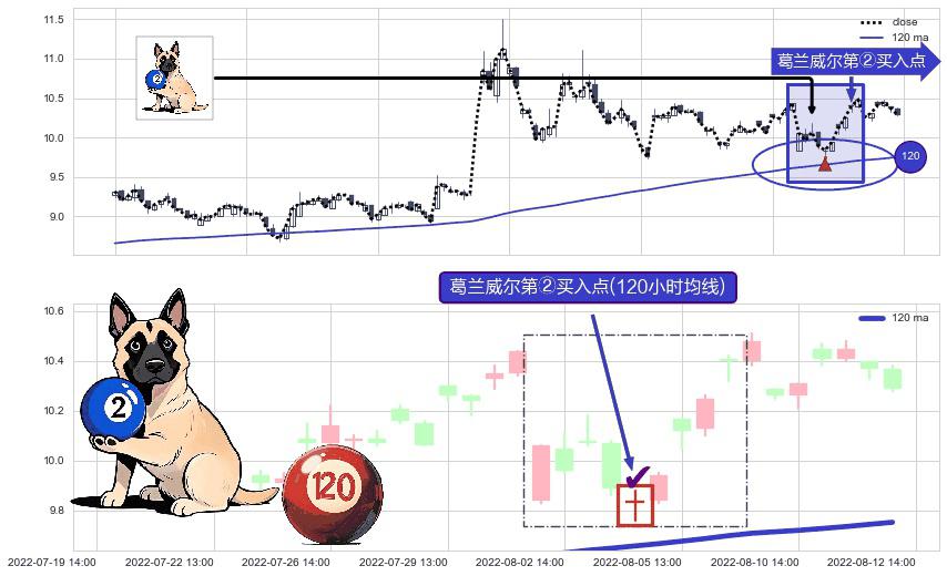 ⚀ 2022-08-04 13:00:00-小时显现 葛兰威尔均线 120小时均线 第②买入点 上升趋势的中继信号,后市看涨,买进信号