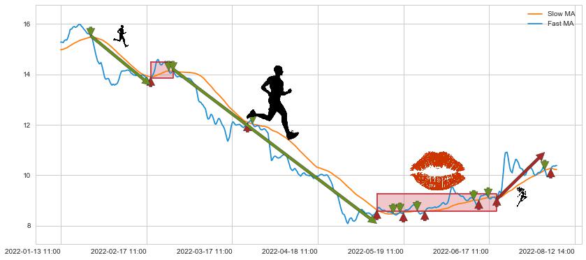 05-11 10:00至06-23 13:00 慢线与快线多次接触,存在上下穿越,有缠绕