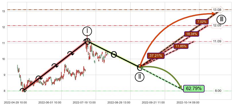 ♘ 支撑价格位8.44,可信任强度98.89%,距离最后交易2022-08-12 14:00形成的收盘价格10.29相差 -17.94%