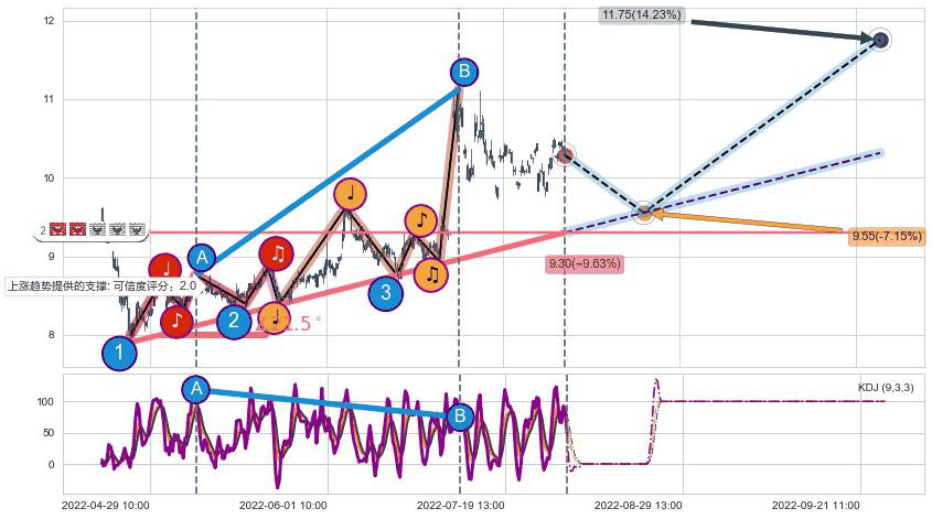 ➢ 预测:2022-08-24 11:00,【小幅回撤】稳定目前上涨趋势的前提下,预测价格:9.55