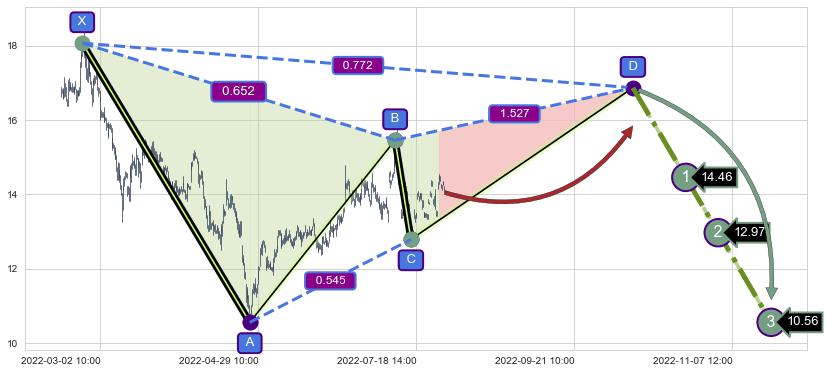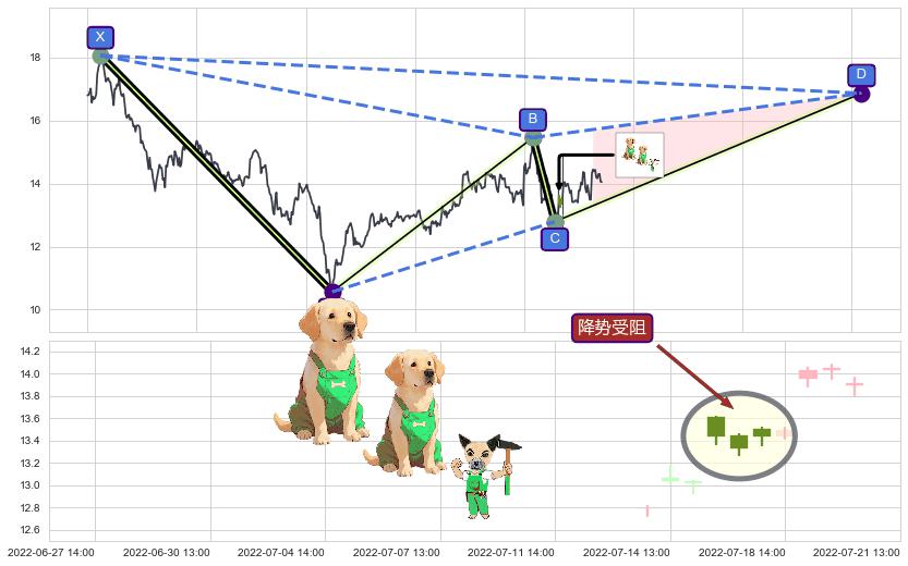 ➣ D点拟合预测价格16.87,距离最后交易收盘价格14.05相差 +20.06%