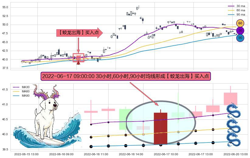 形态多维评估: ⚀ 2022-06-17 09:00:00小时显现 30小时-60小时-90小时均线 【蛟龙出海】买入点 看多信号,后市看涨,买入